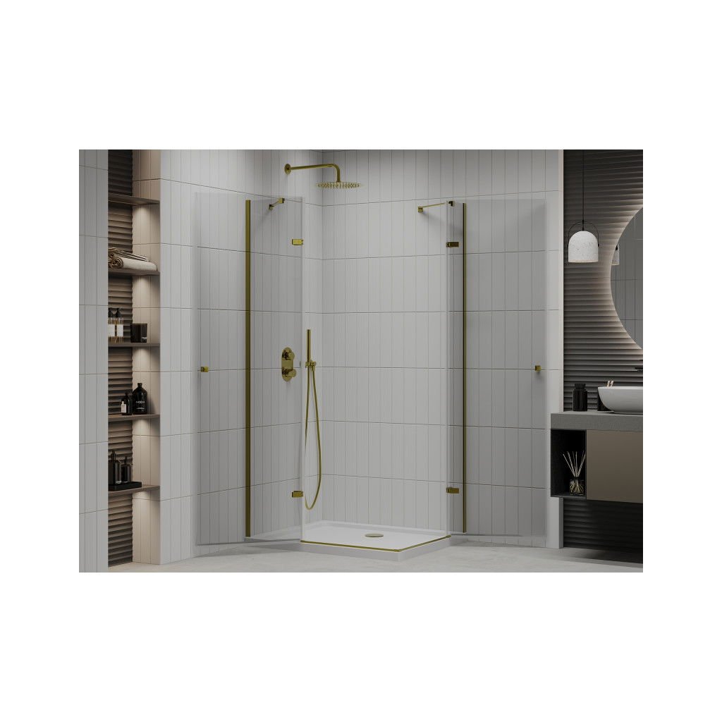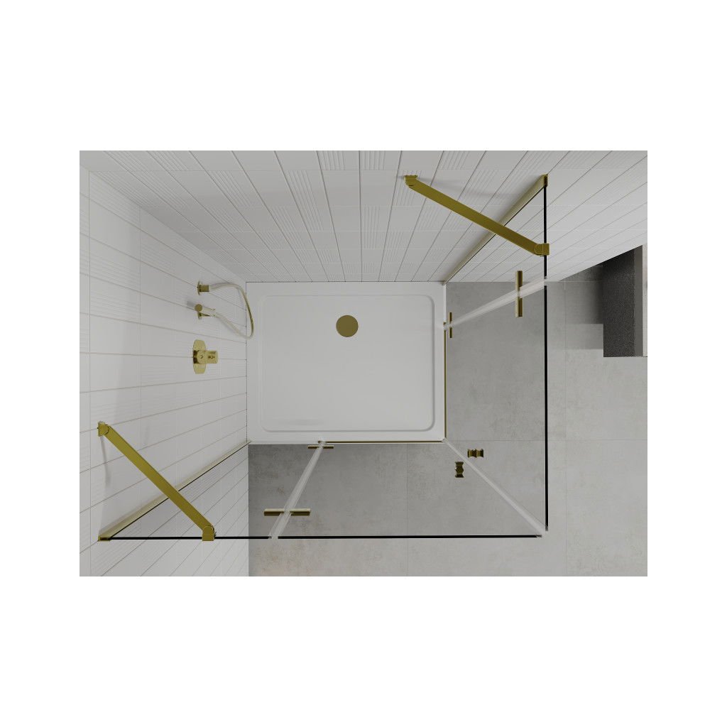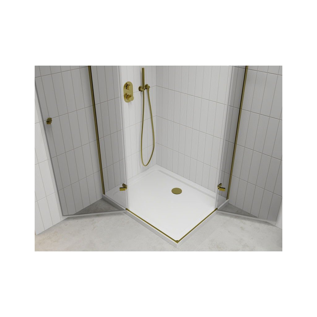 Mexen Roma Duo, cabină de duș 80 (uşă) x 70 (uşă) cm, sticlă transparentă 6 mm, profil auriu + cadă de duș subțire 5 cm albă + sifon auriu, 854-080-070-50-02-4010G