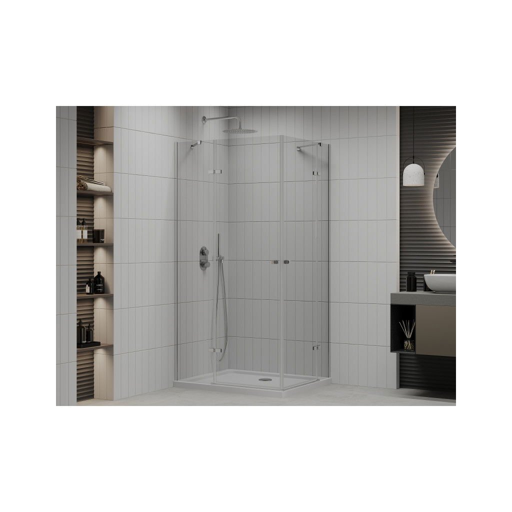 Mexen Roma Duo, duș 80 (uşă) x 70 (uşă) cm, sticlă transparentă 6mm, profil cromat + cadă de duș SLIM 5cm albă + sifon crom, 854-080-070-01-02-4010