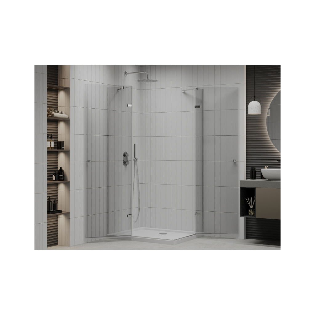 Mexen Roma Duo, duș 90 (uşă) x 80 (uşă) cm, sticlă transparentă 6mm, profil cromat + cadă de duș SLIM 5cm albă + sifon crom, 854-090-080-01-02-4010