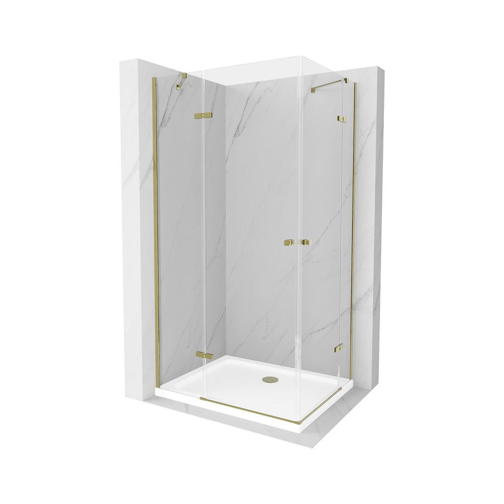 Mexen Roma Duo, dus 100 (usa) x 90 (usa) cm, sticla transparenta 6mm, profil auriu + cadita de dus subtire 5cm alb + sifon auriu, 854-100-090-50-02-4010G