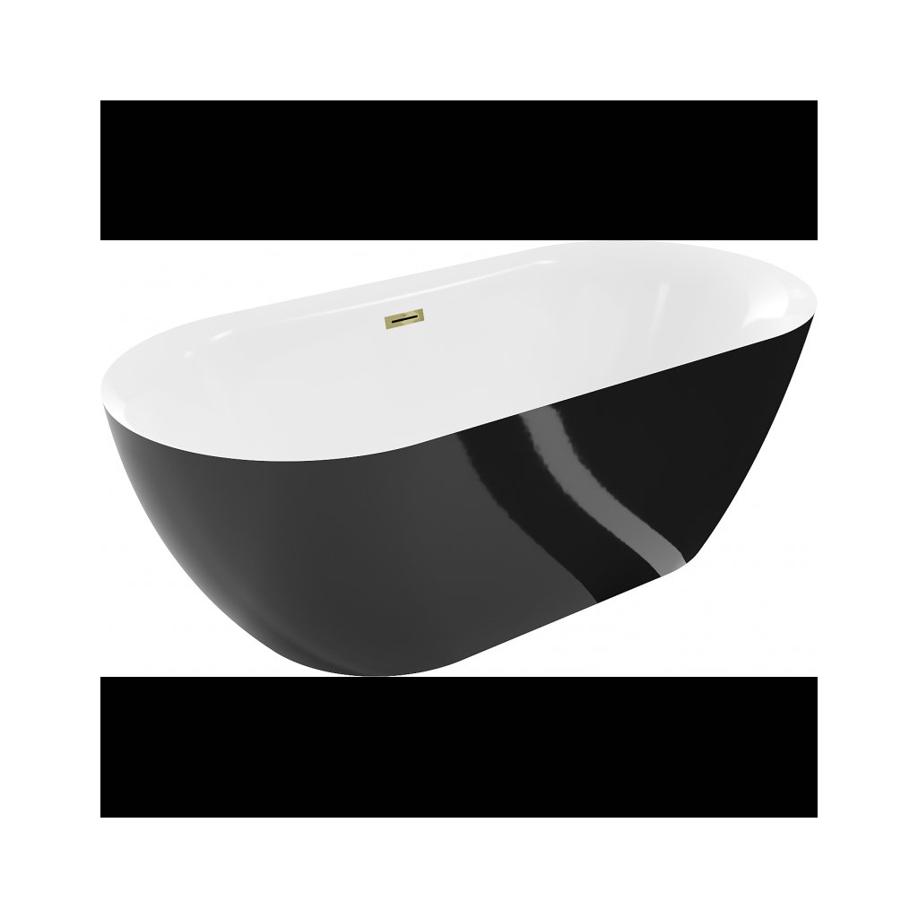 Mexen Roxy, cada de baie de sine stătătoare 170 x 80 cm, alb-negru, preaplin auriu strălucitor, 51201708075-50