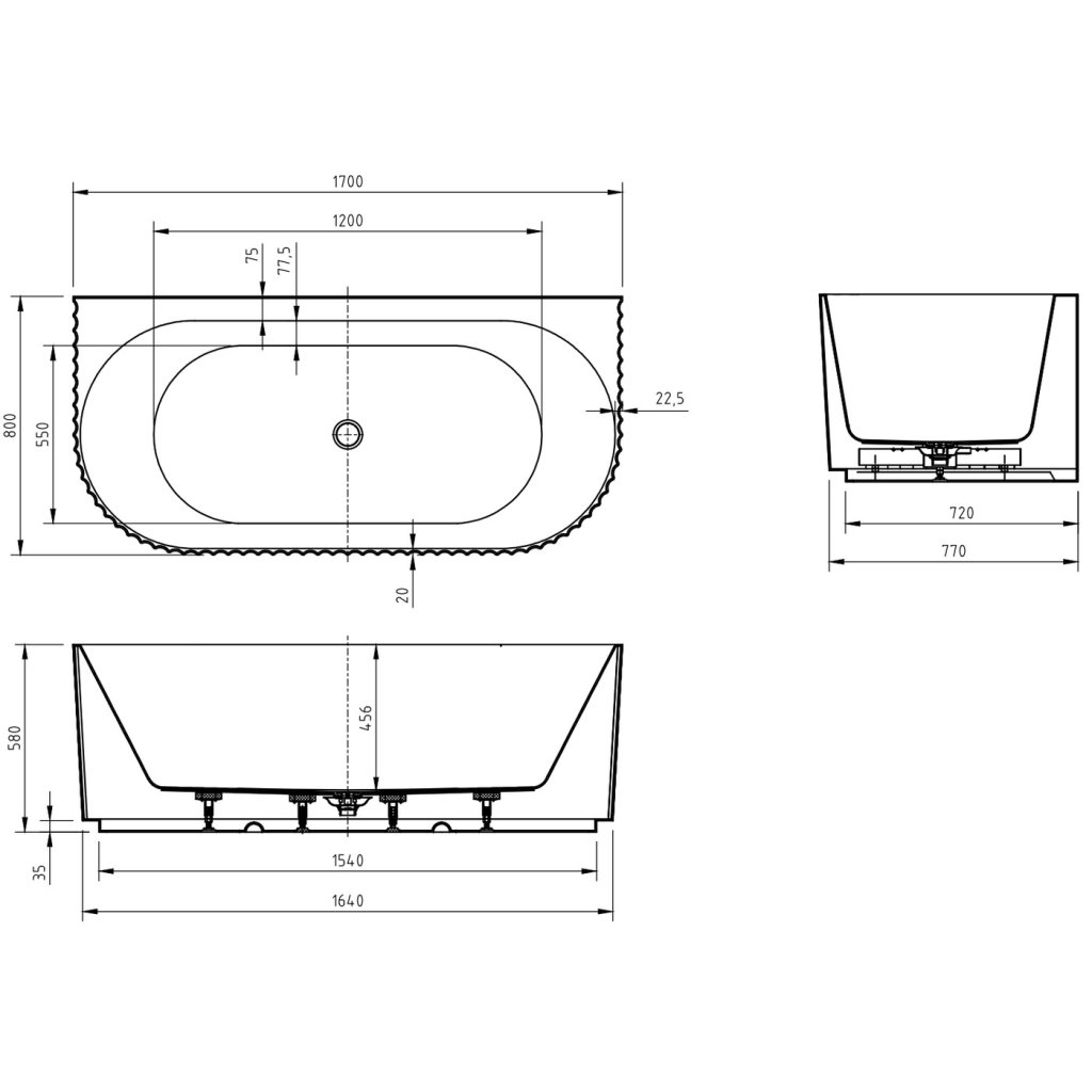 Mexen Sella, cadă de sine stătătoare pe perete, canelată, 170 x 80 cm, negru mat, 52711708071-SS