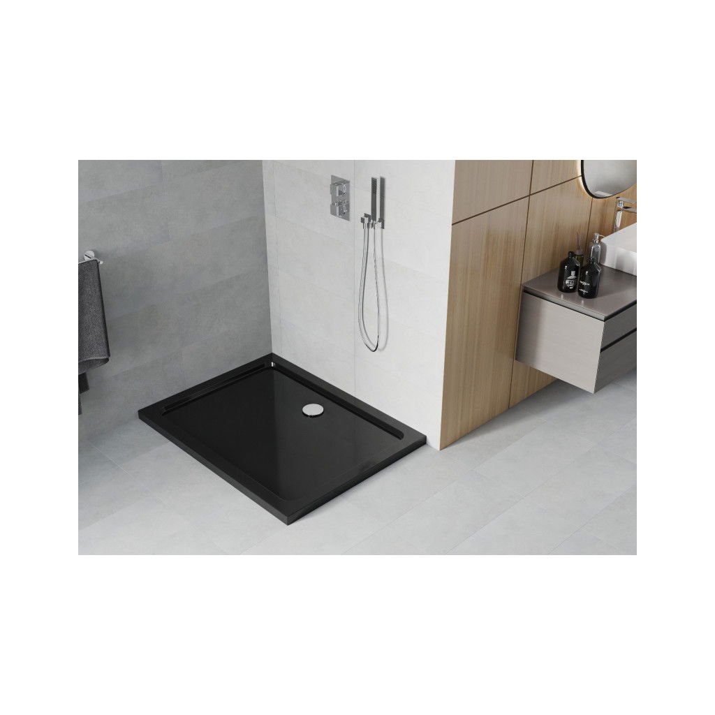 Mexen Slim, cadă de duș dreptunghiulară 110x100x5cm + sifon cromat, negru, 40701011