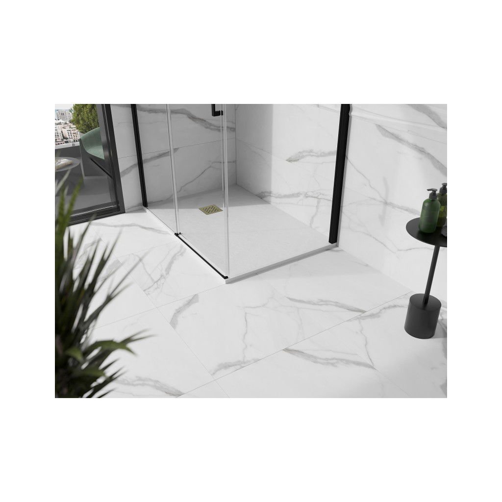 Mexen Stone+, cada dreptunghiulară din compozit mineral 110 x 80 cm, alb, capac auriu lucios, 44108011-G