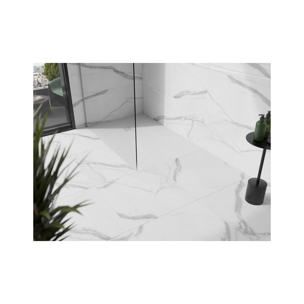 Mexen Stone+, cada dreptunghiulară din compozit mineral 140 x 100 cm, alb, capac alb, 44101014-W