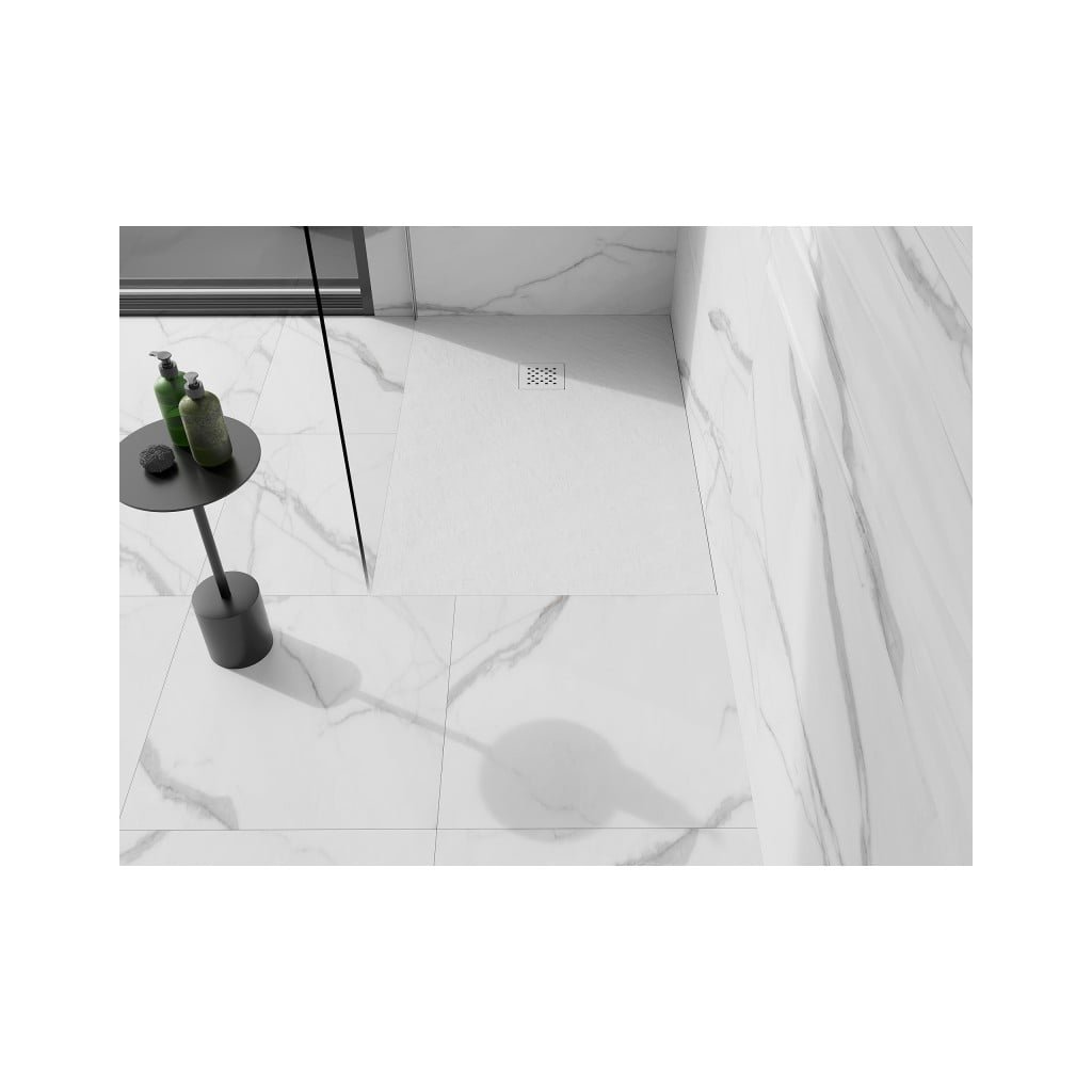 Cădița de duș din colecția STONE+ este realizată din compozit mineral de înaltă calitate, care este compus din carbonat de calciu, rășină și gel de umplutură. Materialele sunt întărite la presiune și temperatură ridicată. Acest lucru le conferă rezistență ridicată, rezistență la zgârieturi și capacitate mare de încărcare. Cu modelul său de suprafață, imită o cadă de piatră, dar oferă rezistență și stabilitate mai mari. Cada poate fi amplasată direct pe podea sau într-un pat de mortar, sau scufundată la nivel de podea.