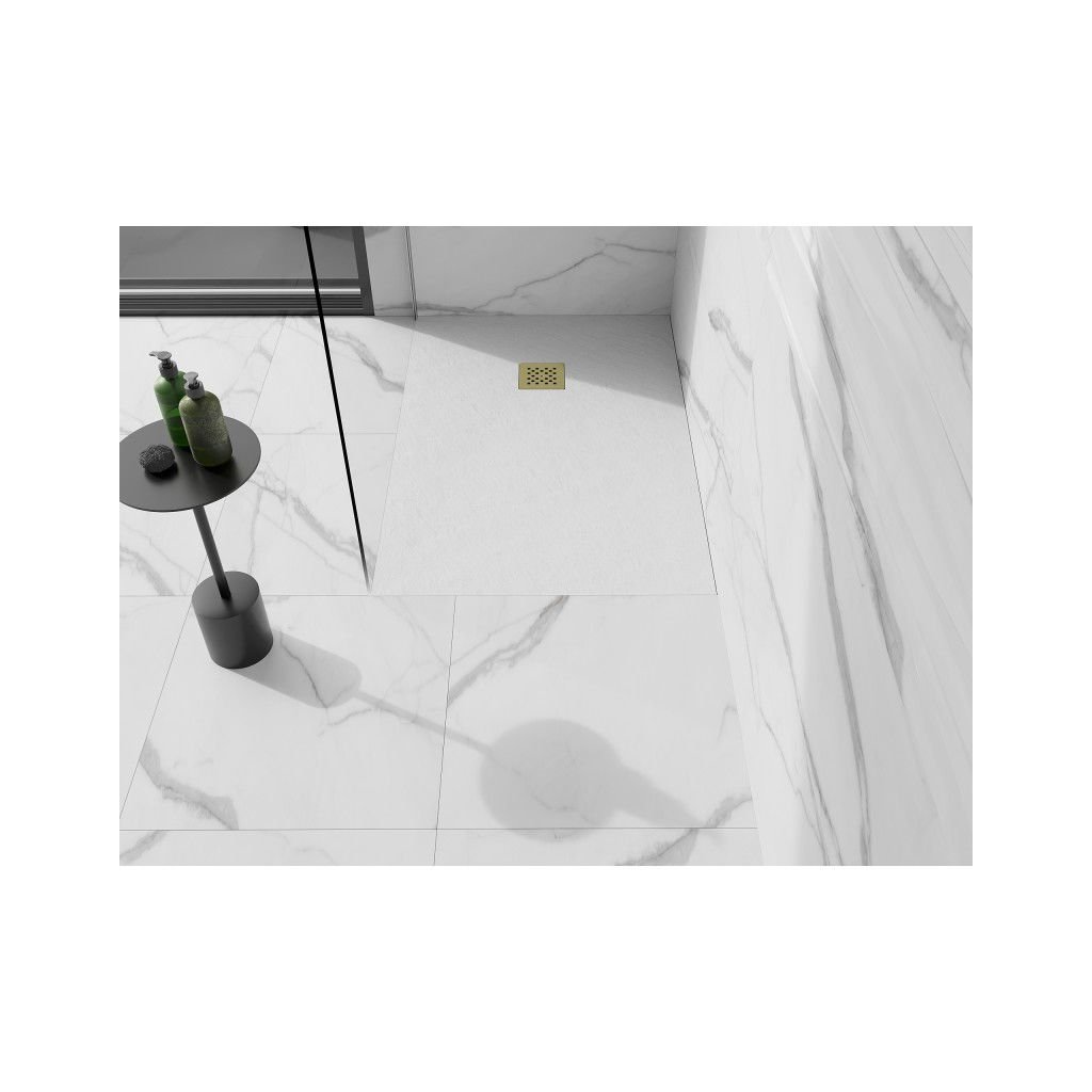 Mexen Stone+, cada dreptunghiulară din compozit mineral 140 x 70 cm, capac alb, auriu lucios, 44107014-G