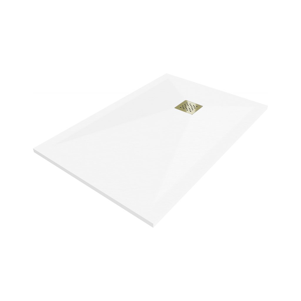 Mexen Stone+, cada dreptunghiulară din compozit mineral 80 x 70 cm, capac alb, auriu lucios, 44107080-G