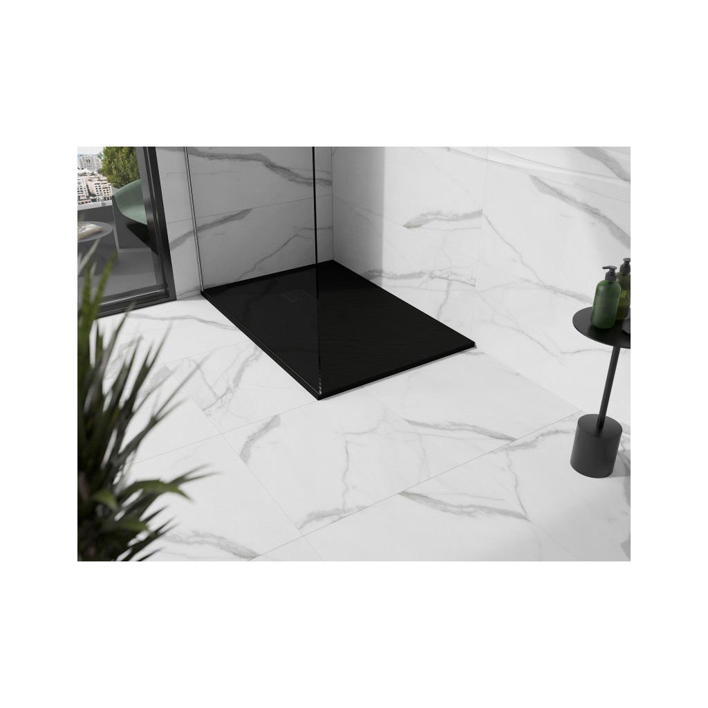 Mexen Stone+, cada dreptunghiulară din compozit mineral 90 x 70 cm, negru, capac negru, 44707090-B