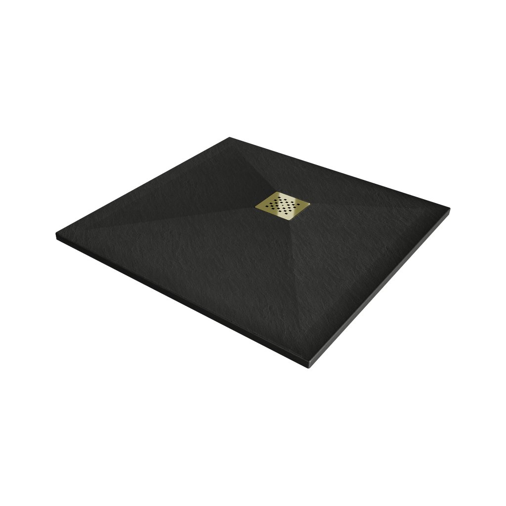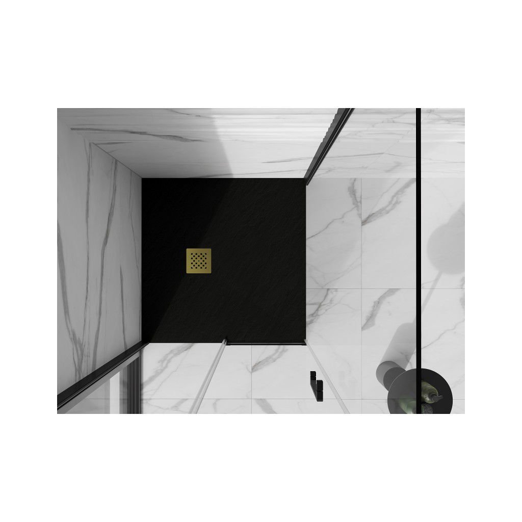 Mexen Stone+, cada pătrată din compozit mineral 80 x 80 cm, negru, capac auriu lucios, 44708080-G