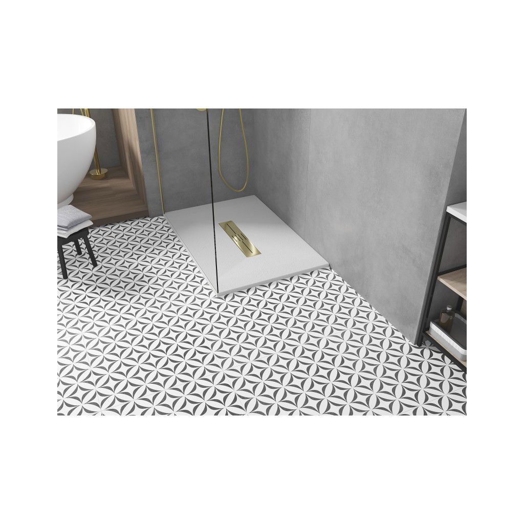 Mexen Toro, cadă de duș dreptunghiulară SMC 130 x 80 cm, alb, capac auriu, 43108013-G