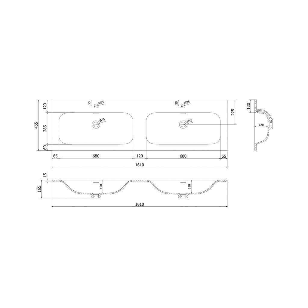 Mexen Vela, chiuvetă dublă pentru instalare încastrată 161 x 46,5 cm, alb lucios, 25231600D