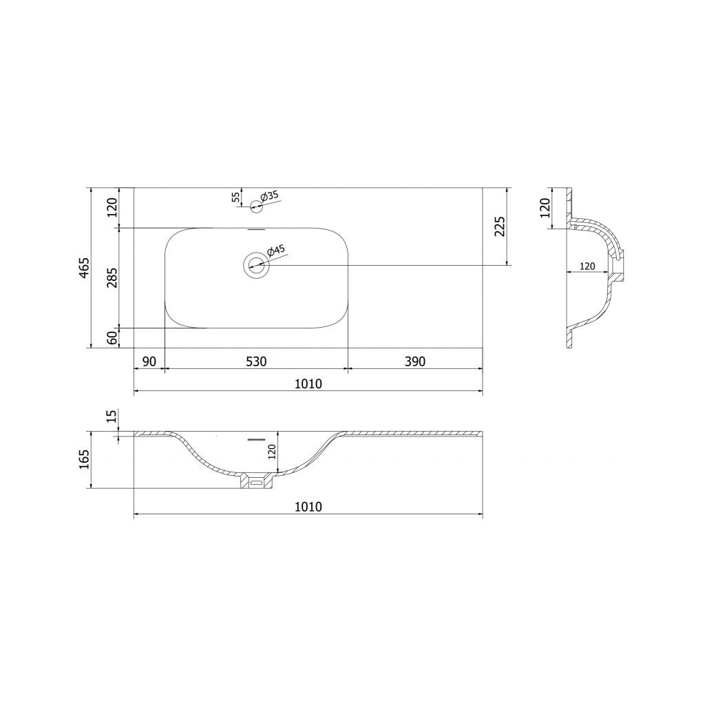 Date tehnice: Dimensiuni: 101x46,5x16,5 cm Adâncime: 12 cm Tip: Încastrat, partea stângă Culoare: Negru mat Material: Conglomerat Gaură preaplin: Da Gaură baterie: DaParametri suplimentari