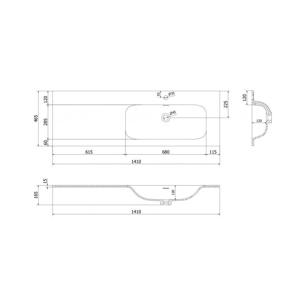 Mexen Vela, lavoar încorporat 141 x 46,5 cm, dreapta, alb lucios, 25231400P