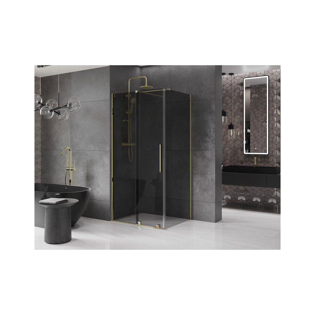 Mexen Velar, cabină de duș cu ușă glisantă 100 x 90 cm, sticlă gri 8 mm, auriu lucios, 871-100-090-41-50