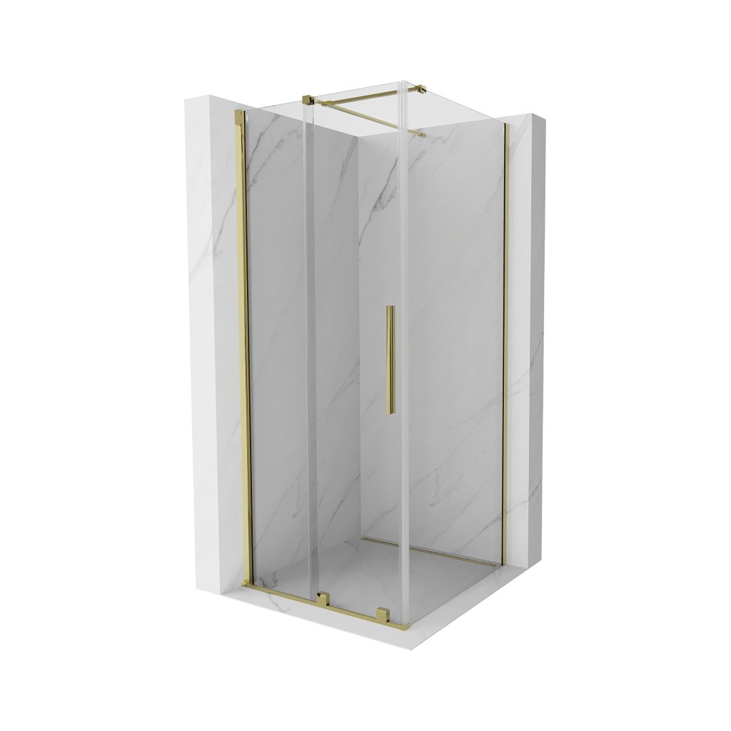 Mexen Velar, cabină de duș cu ușă glisantă 120(uşă) x 120(perete) cm, sticlă transparentă 8mm, auriu strălucitor, 871-120-120-01-50