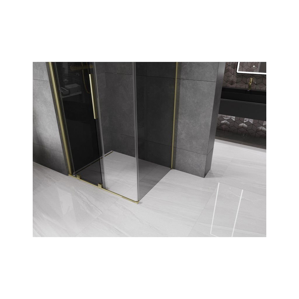 Mexen Velar, cabină de duș cu ușă glisantă 120 x 110 cm, sticlă gri 8 mm, auriu mat, 871-120-110-41-55