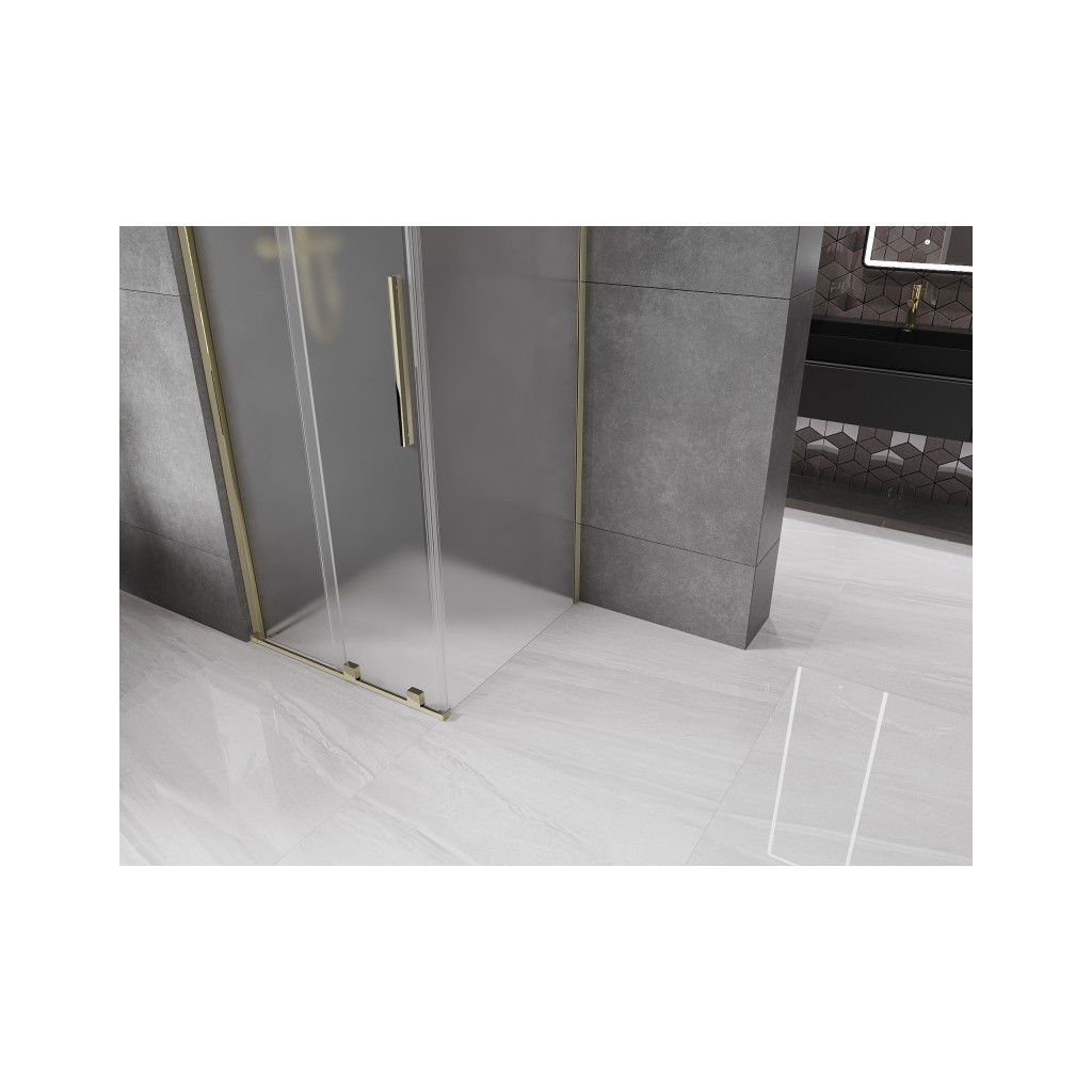 Mexen Velar, cabină de duș cu ușă glisantă 120 x 120 cm, sticlă mată 8 mm, auriu lucios, 871-120-120-31-50