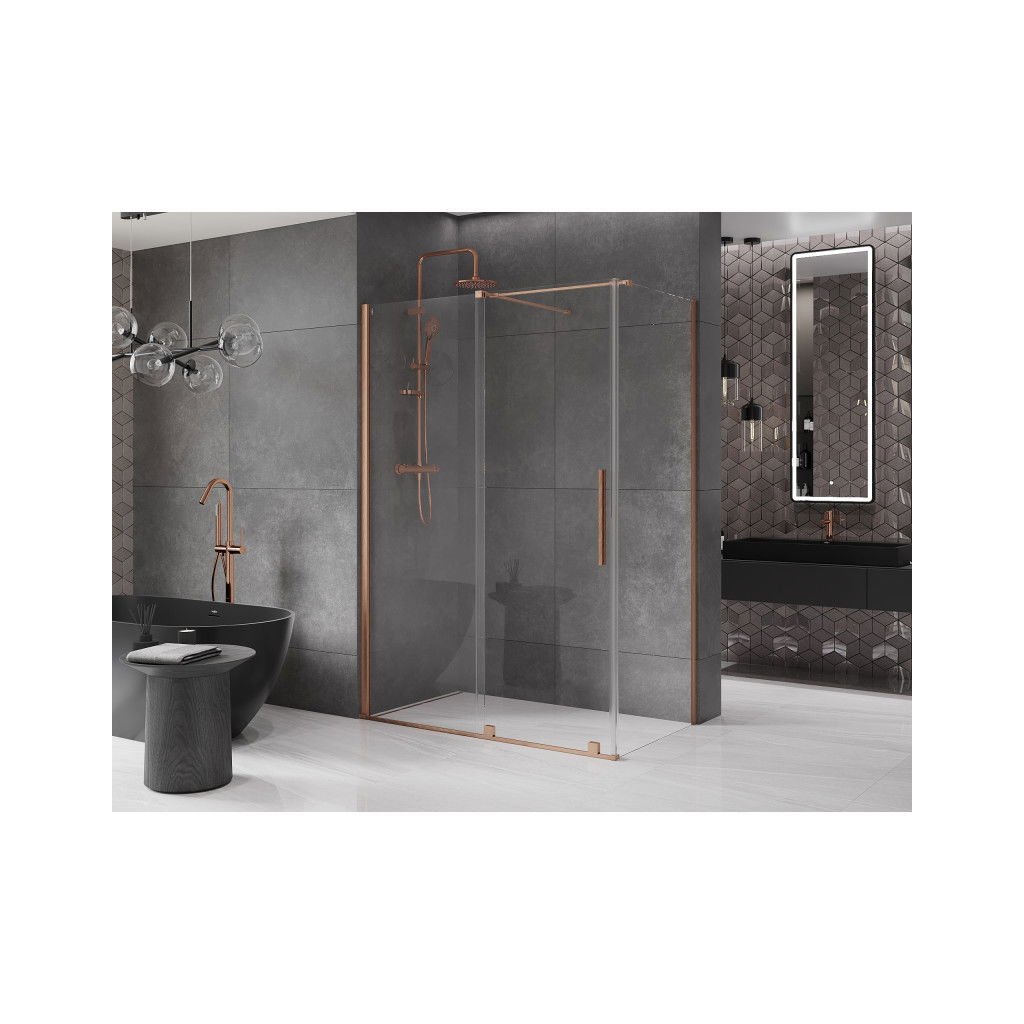 Mexen Velar, cabină de duș cu ușă glisantă 130(uşă) x 75(perete) cm, sticlă transparentă de 8 mm, cupru mat, 871-130-075-01-65