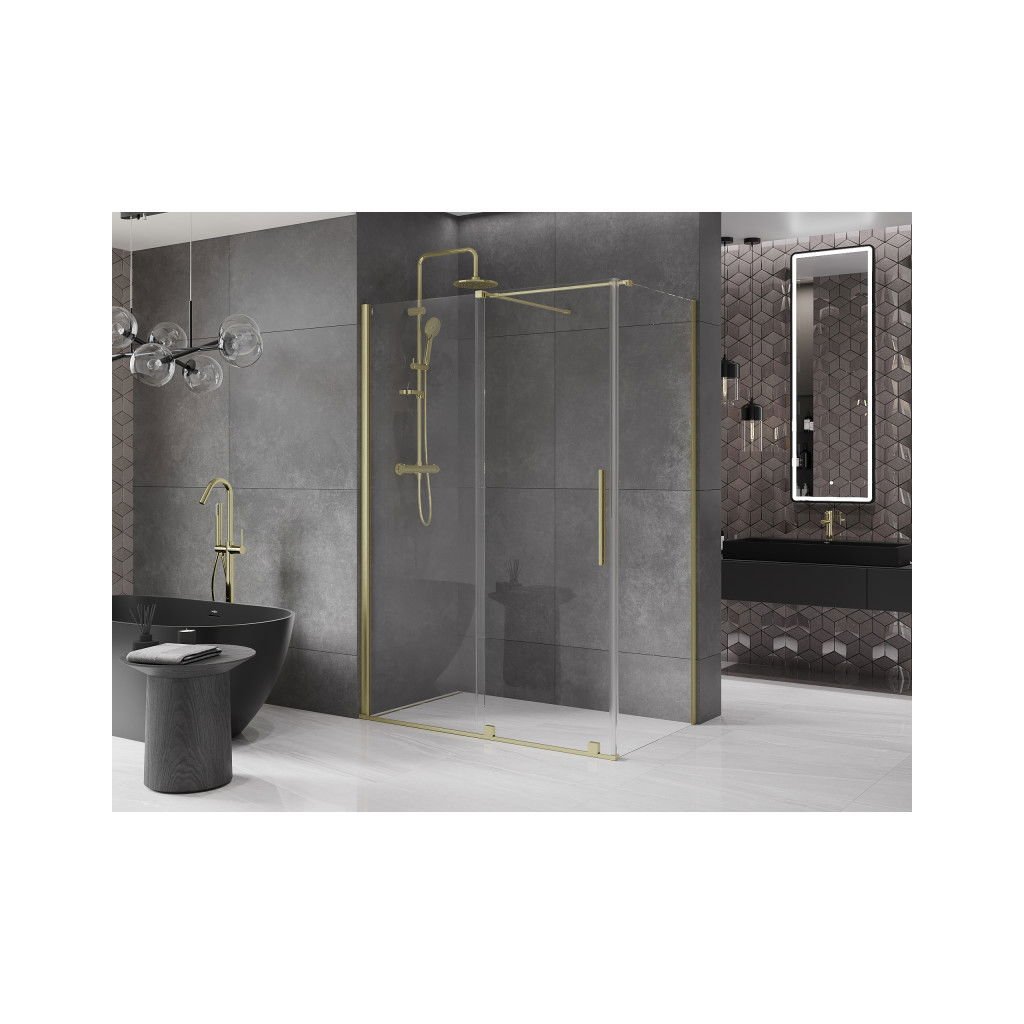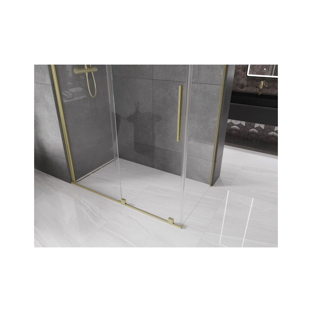 Mexen Velar, cabină de duș cu ușă glisantă 140(uşă) x 75(perete) cm, sticlă transparentă 8mm, auriu mat, 871-140-075-01-55