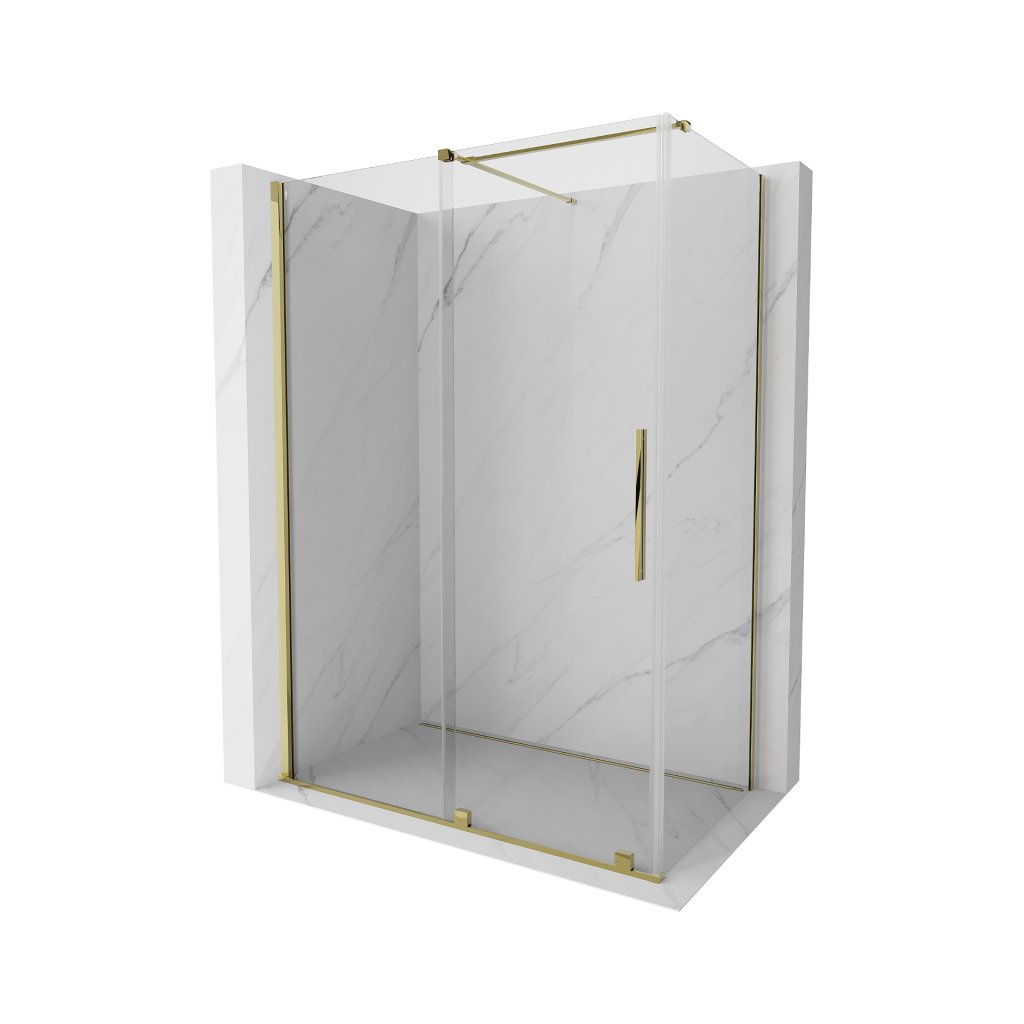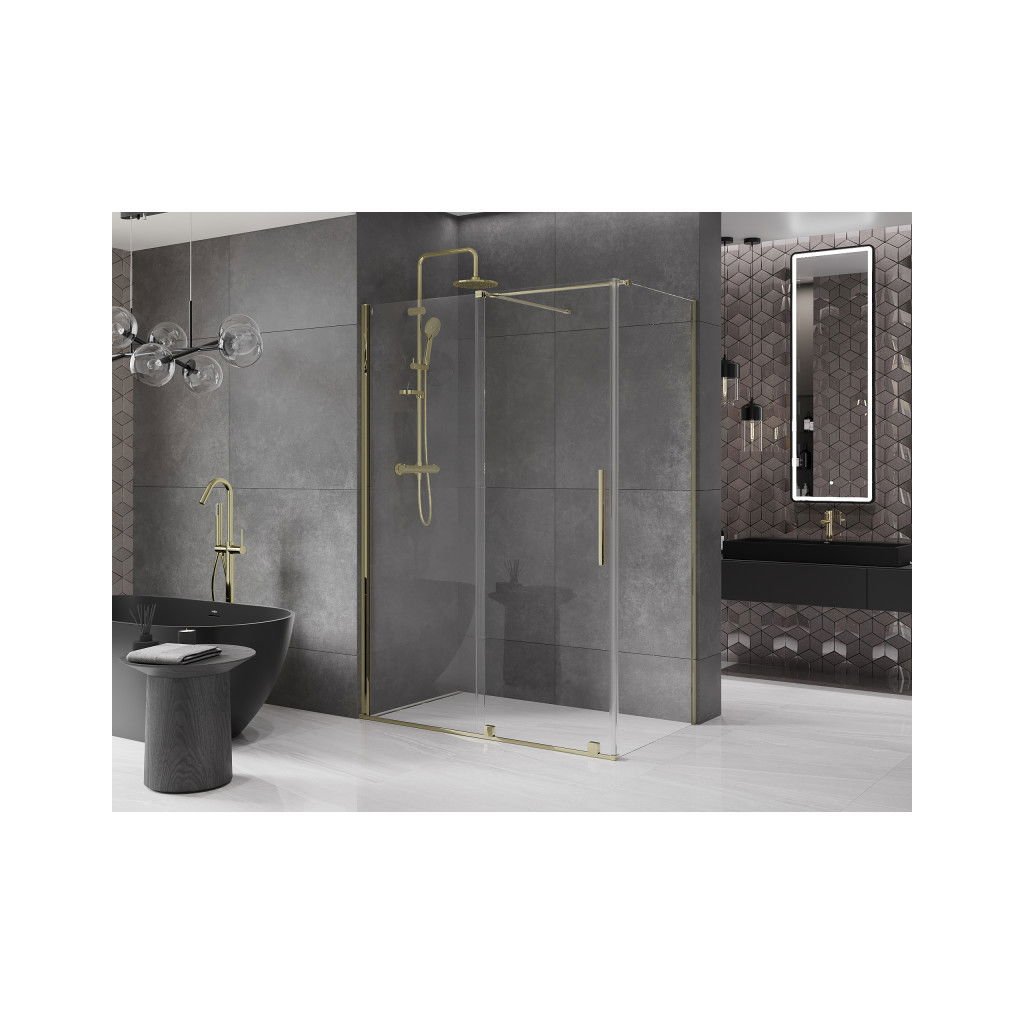 Mexen Velar, cabină de duș cu ușă glisantă 140(uşă) x 85(perete) cm, sticlă transparentă 8mm, auriu lucios, 871-140-085-01-50