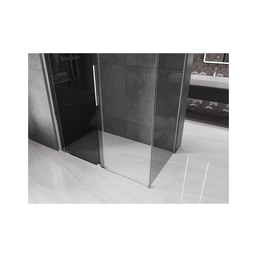 Mexen Velar, cabină de duș cu ușă glisantă 140 x 70 cm, sticlă gri 8 mm, crom, 871-140-070-41-01