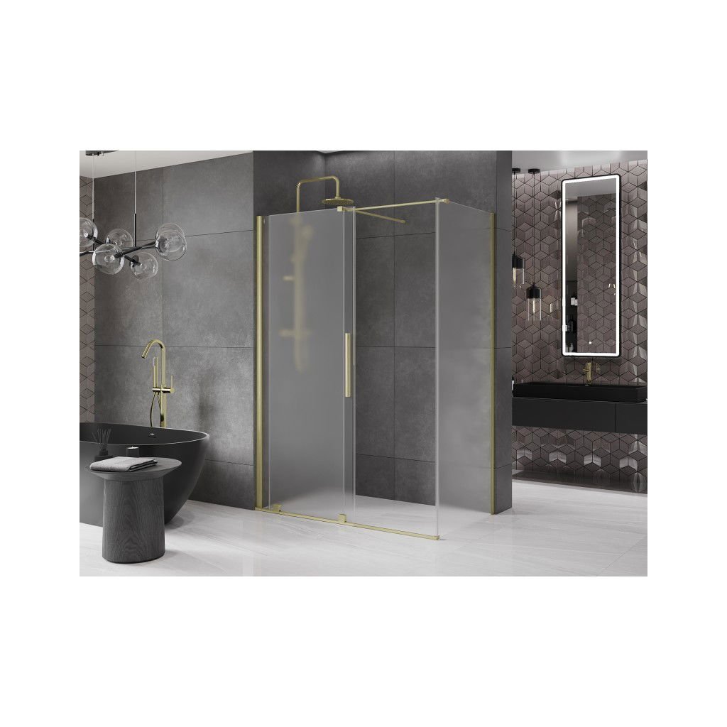 Mexen Velar, cabină de duș cu ușă glisantă 140 x 70 cm, sticlă mată 8 mm, auriu mat, 871-140-070-31-55