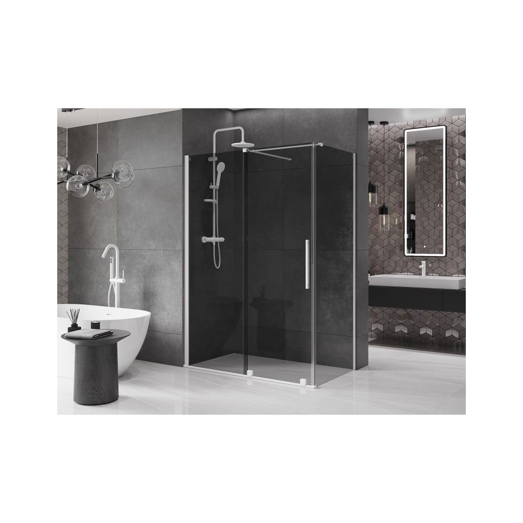 Mexen Velar, cabină de duș cu ușă glisantă 160 x 85 cm, sticlă gri 8 mm, alb mat, 871-160-085-41-20