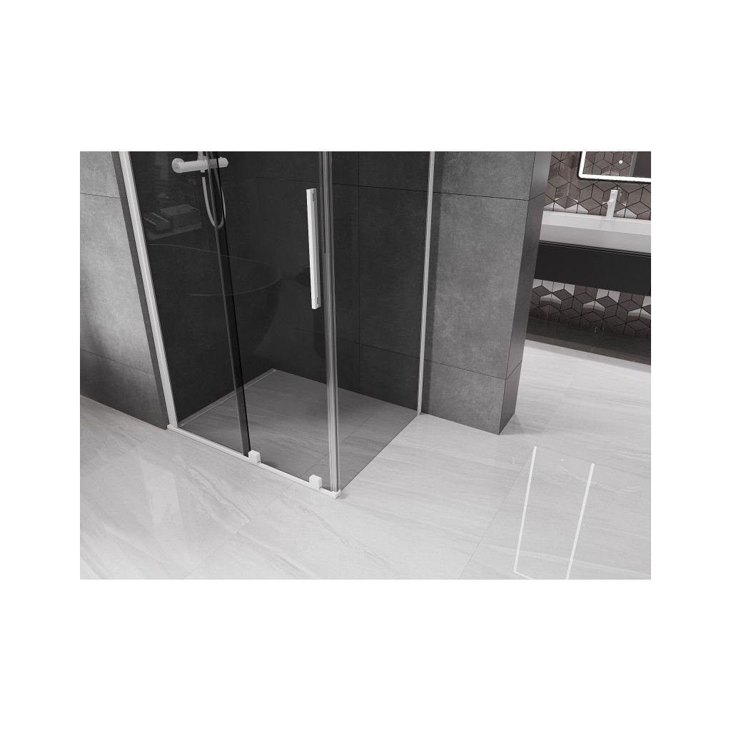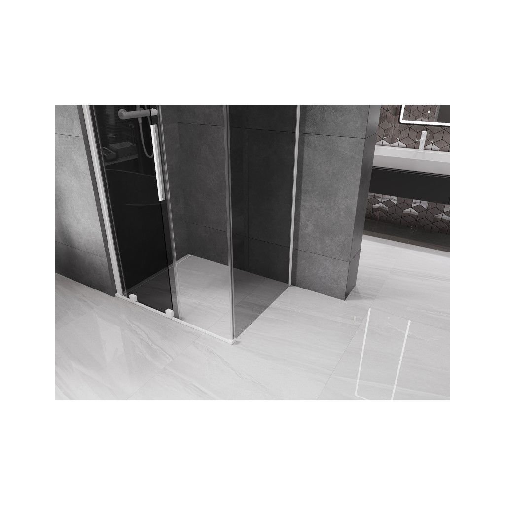 Mexen Velar, cabină de duș cu ușă glisantă 90 x 70 cm, sticlă gri 8 mm, alb mat, 871-090-070-41-20