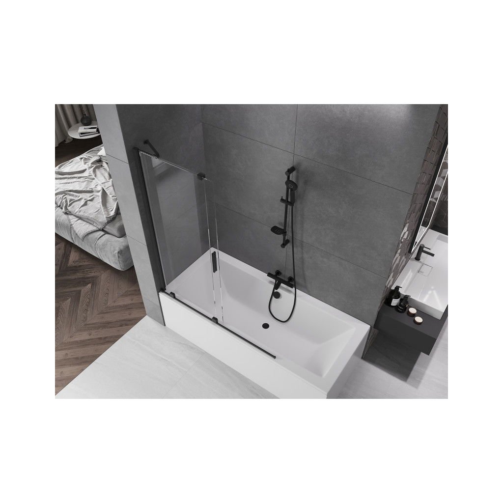 Mexen Velar, paravan de baie glisant cu 2 aripi 130 x 150 cm, sticlă transparentă de 8 mm, negru mat, 896-130-000-01-70
