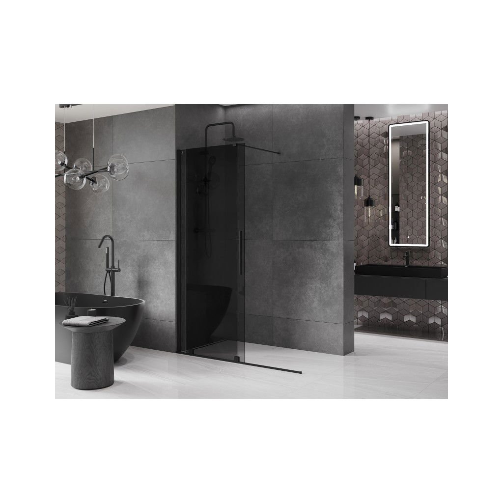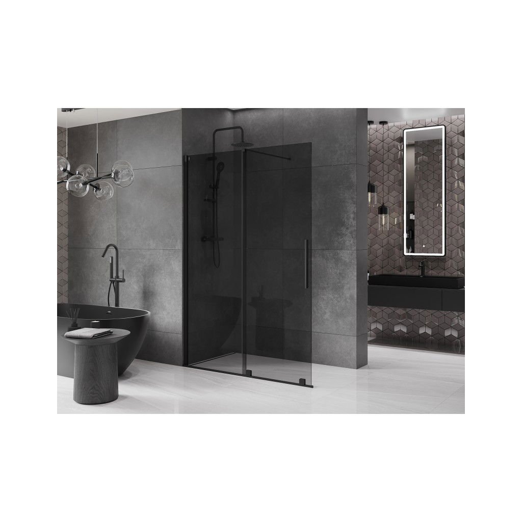 Mexen Velar, paravan de dus cu usa culisanta Walk-in 150 x 200 cm, sticla gri 8mm, negru mat, 871-150-000-43-70