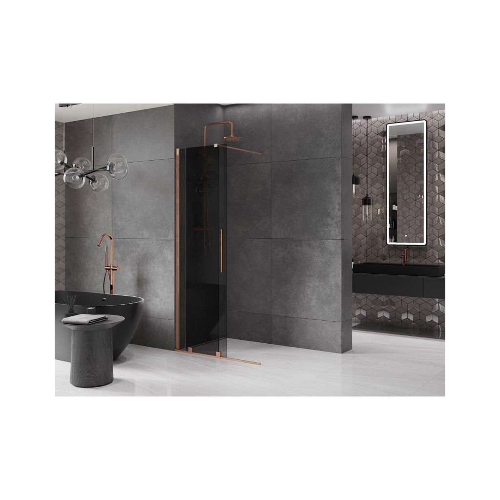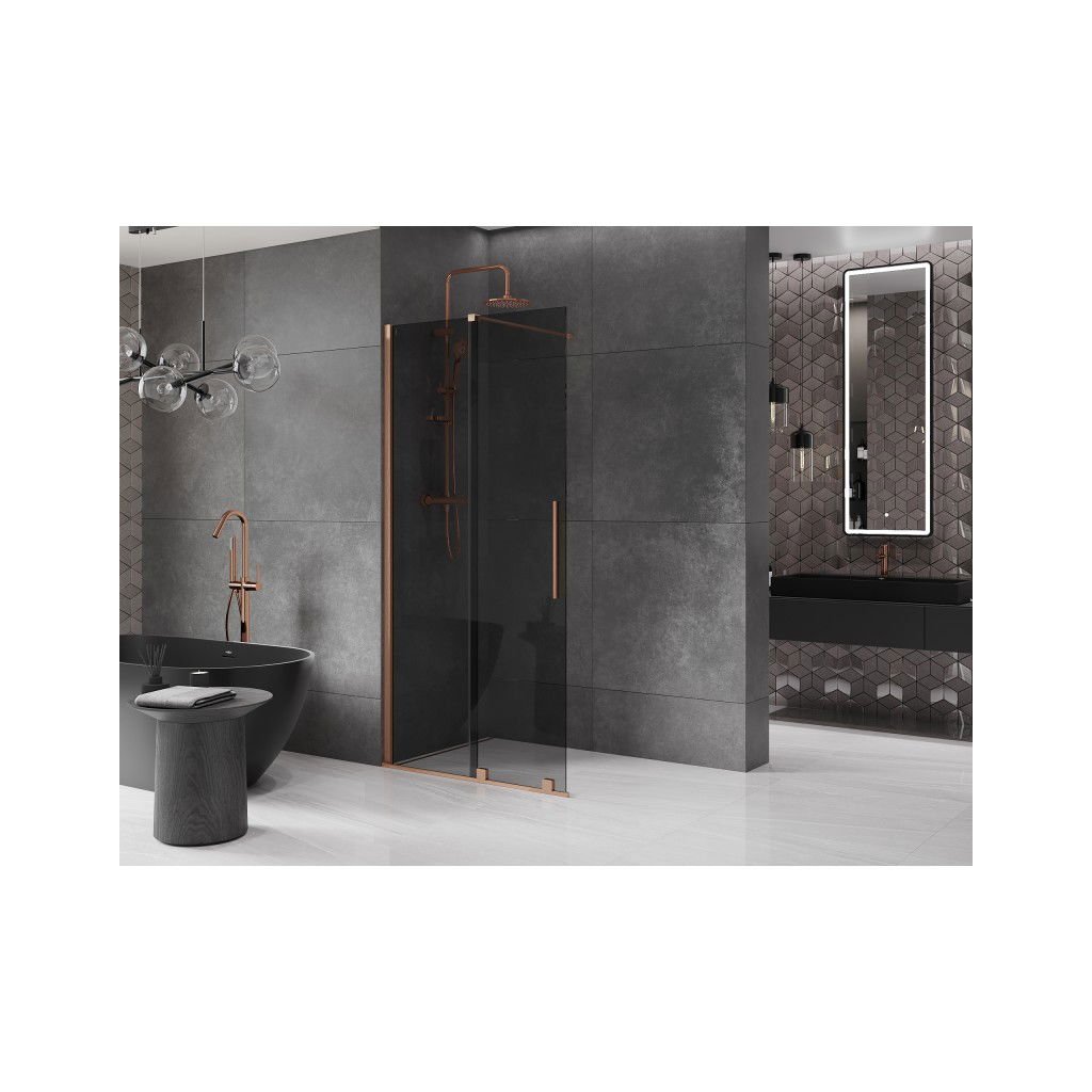 Mexen Velar, paravan de dus cu usa culisanta Walk-in 70 x 200 cm, sticla gri 8mm, cupru mat, 871-070-000-43-65