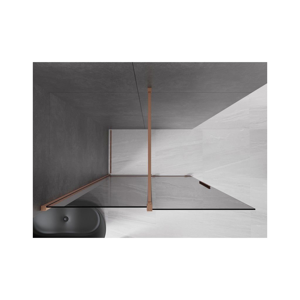Mexen Velar, paravan de dus cu usa glisanta Walk-in 160 x 200 cm, sticla gri 8mm, cupru mat, 871-160-000-43-65