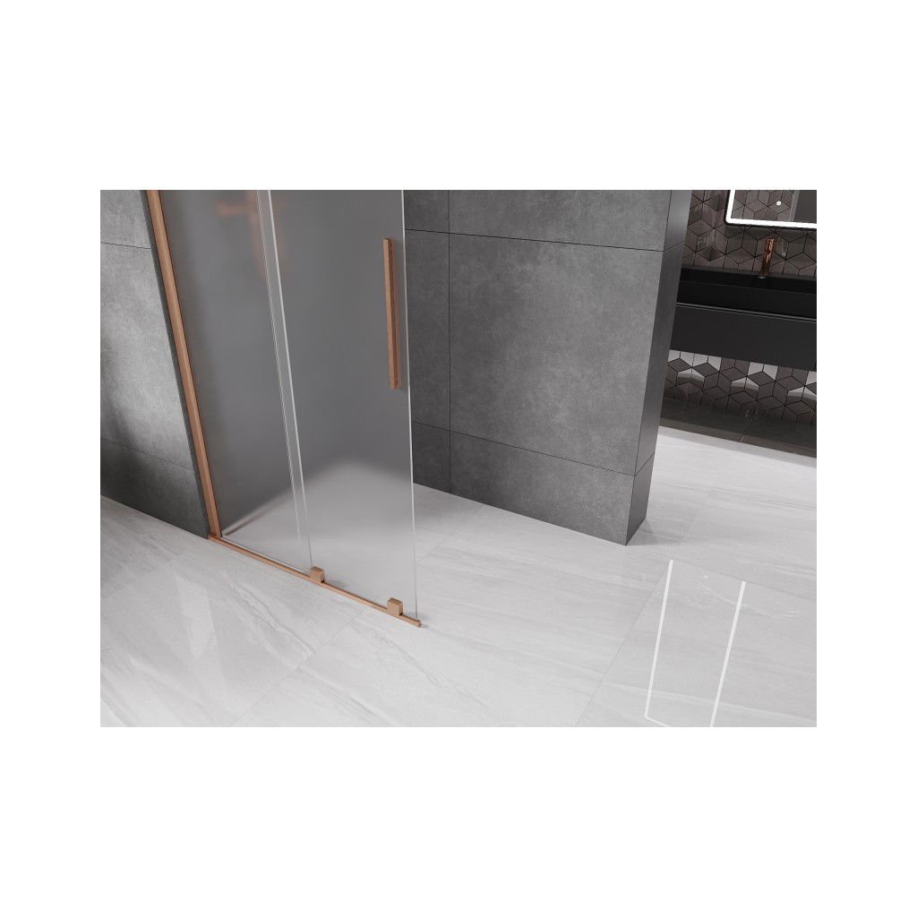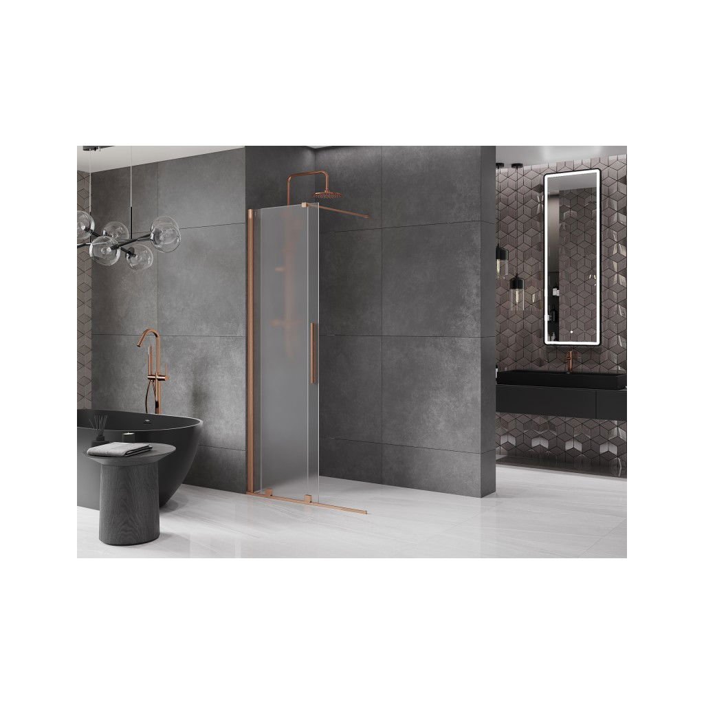 Mexen Velar, paravan de duș cu ușă glisantă Walk-in 75 x 200 cm, sticlă mată 8 mm, cupru mat, 871-075-000-33-65