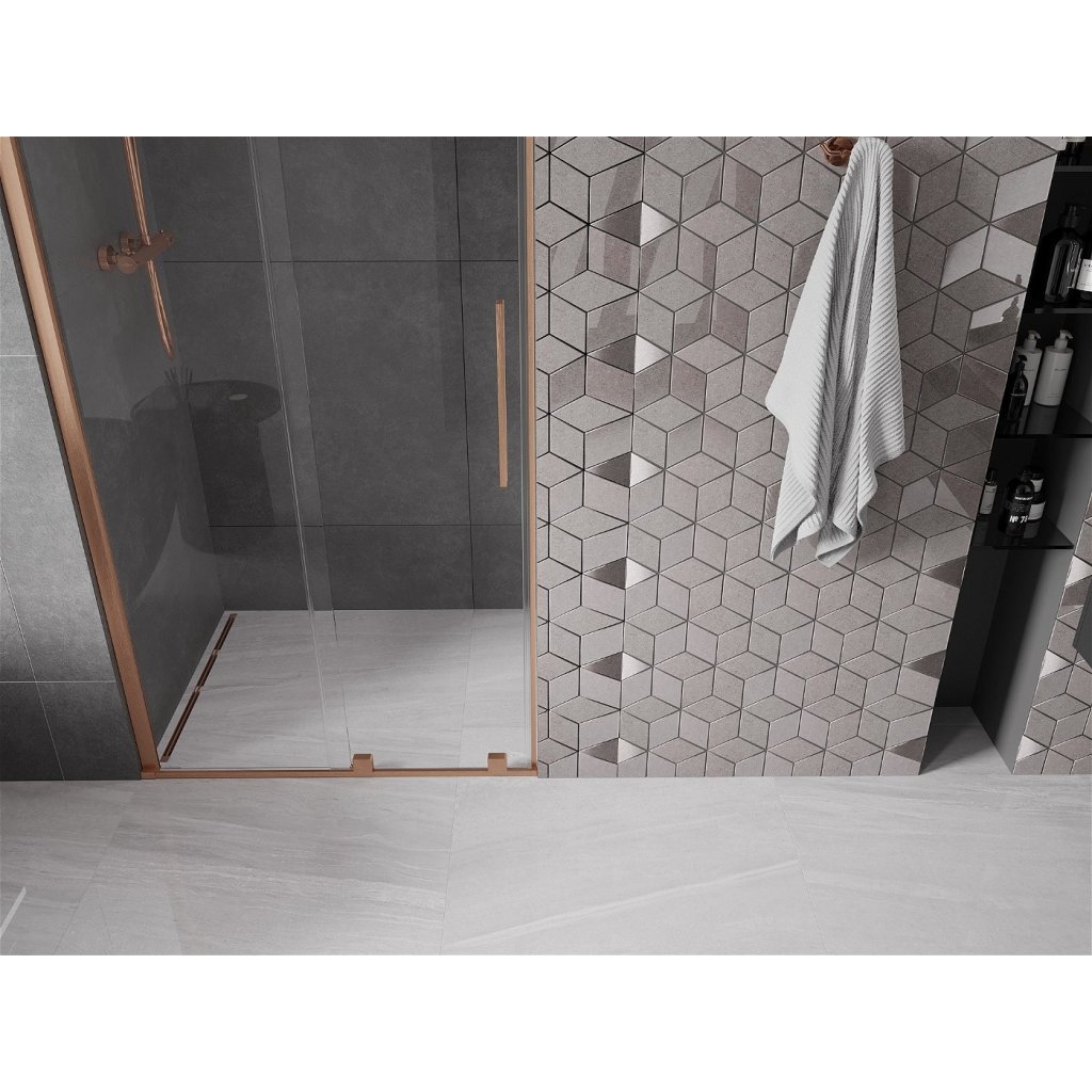 Mexen Velar, usa culisanta pentru deschidere 80x200 cm, sticla transparenta 8mm, profil cupru mat, 871-080-000-01-65