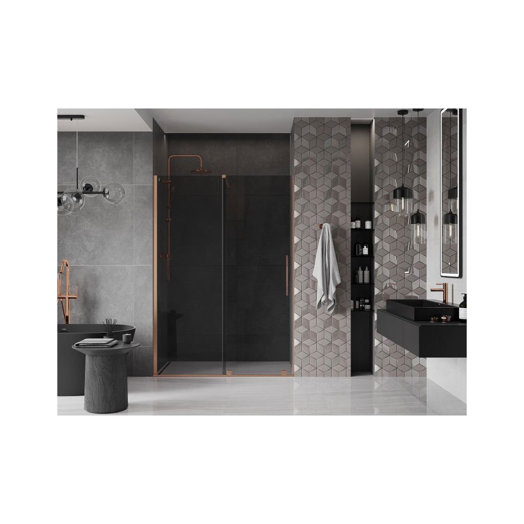 Mexen Velar, usa de dus culisanta pentru deschidere 130 cm, sticla gri 8mm, cupru mat, 871-130-000-41-65