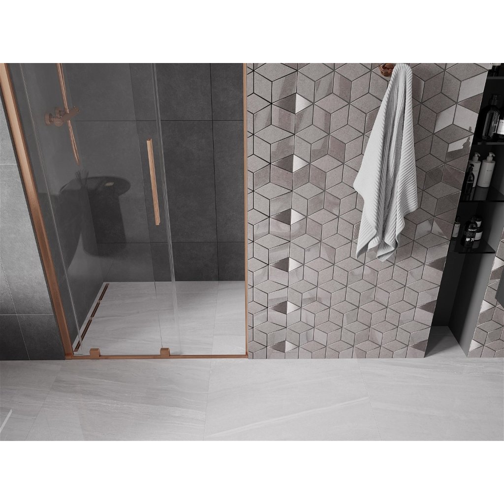 Mexen Velar, usa culisanta pentru deschidere 75x200 cm, sticla transparenta 8mm, profil cupru mat, 871-075-000-01-65