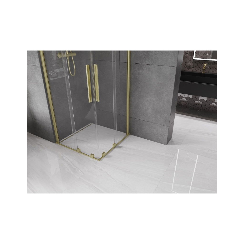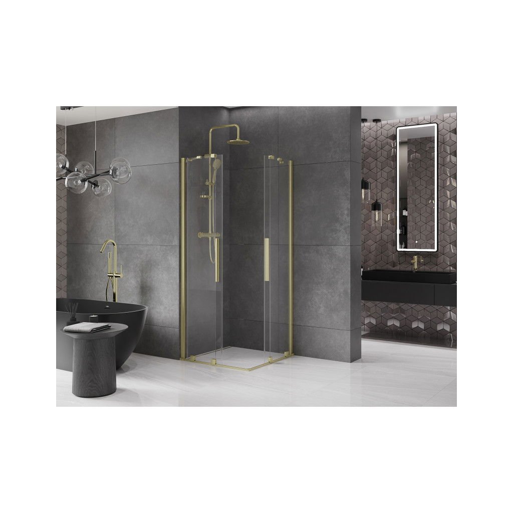 Mexen Velar Duo, cabină de duș cu uşă glisantă 100(uşă) x 100(uşă) cm, sticlă transparentă 8mm, profil auriu mat, 871-100-100-02-55