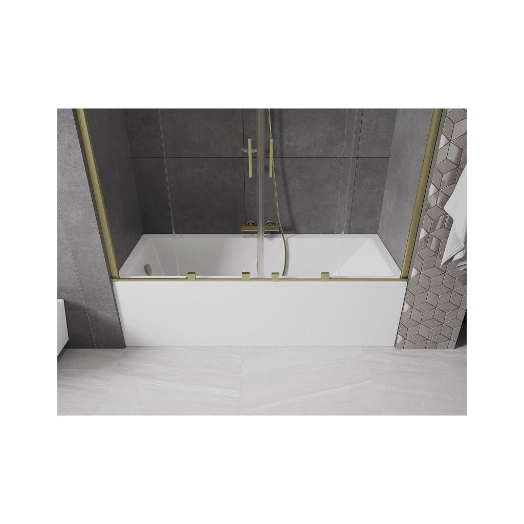 Mexen Velar Duo, paravan de baie glisant cu 2 aripi 200 x 150 cm, sticlă transparentă de 8 mm, profil auriu mat, 896-200-000-02-55