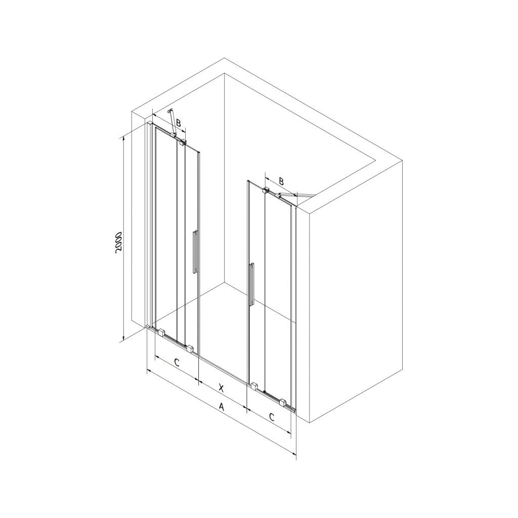Mexen Velar Duo, usa de dus culisanta pentru deschidere 200 cm, sticla mat 8 mm, crom, 871-200-000-32-01