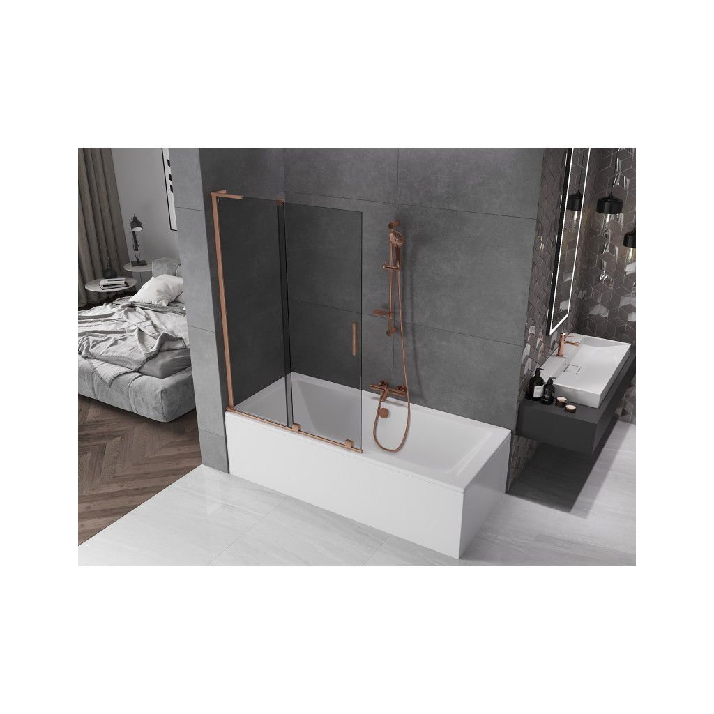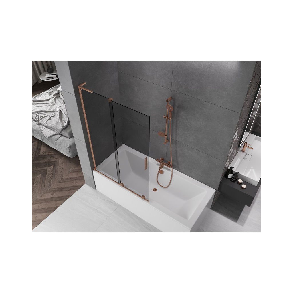 Mexen Velar L, paravan de baie glisant cu 2 aripi 110 x 150 cm, sticlă gri 8 mm, cupru mat, 896-110-003-41-65
