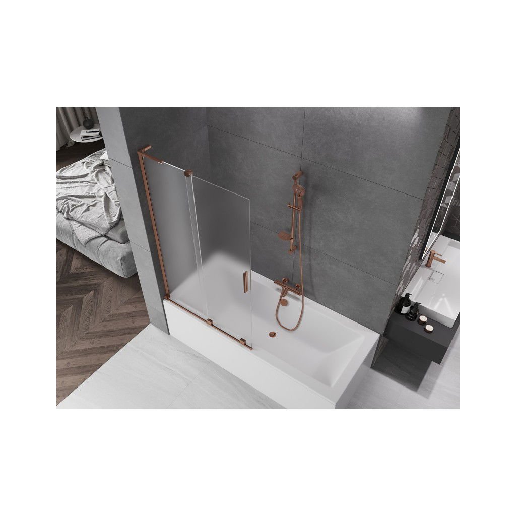 Mexen Velar L, paravan de baie glisant cu 2 aripi 110 x 150 cm, sticlă mată 8 mm, aur roz, 896-110-003-31-60