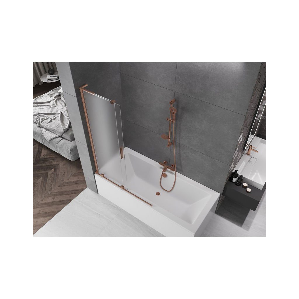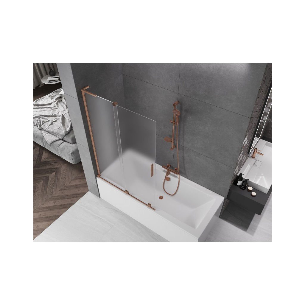 Mexen Velar L, paravan de baie glisant cu 2 aripi 110 x 150 cm, sticlă mată 8 mm, cupru mat, 896-110-003-31-65