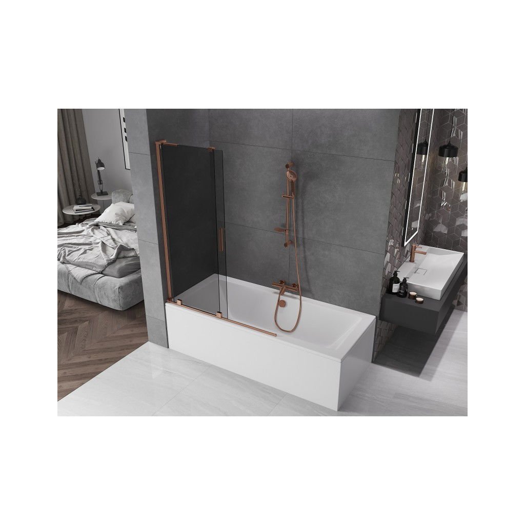 Mexen Velar L, paravan de baie glisant cu 2 aripi 120 x 150 cm, sticlă gri 8 mm, aur roz, 896-120-003-41-60