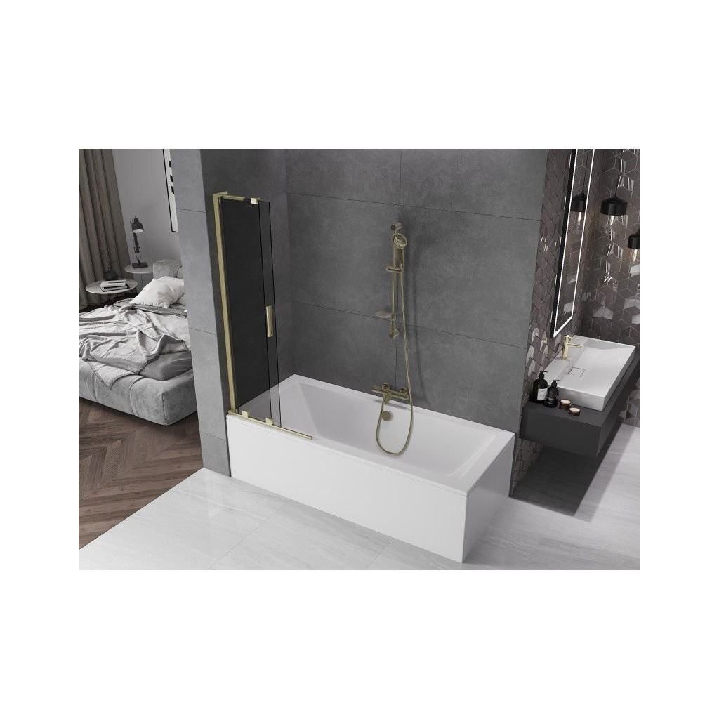 Mexen Velar L, paravan de baie glisant cu 2 aripi 70 x 150 cm, sticlă gri 8 mm, auriu mat, 896-070-003-41-55