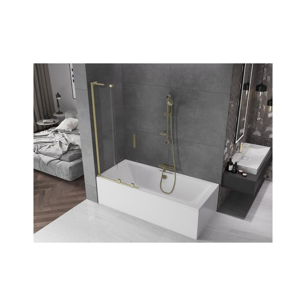 Mexen Velar L, paravan de baie glisant cu 2 aripi 80 x 150 cm, sticlă transparentă de 8 mm, profil auriu mat, 896-080-003-01-55