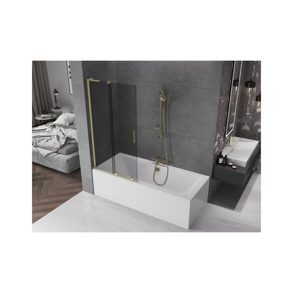 Mexen Velar L, paravan de baie glisant cu 2 aripi 90 x 150 cm, sticlă gri 8 mm, auriu mat, 896-090-003-41-55