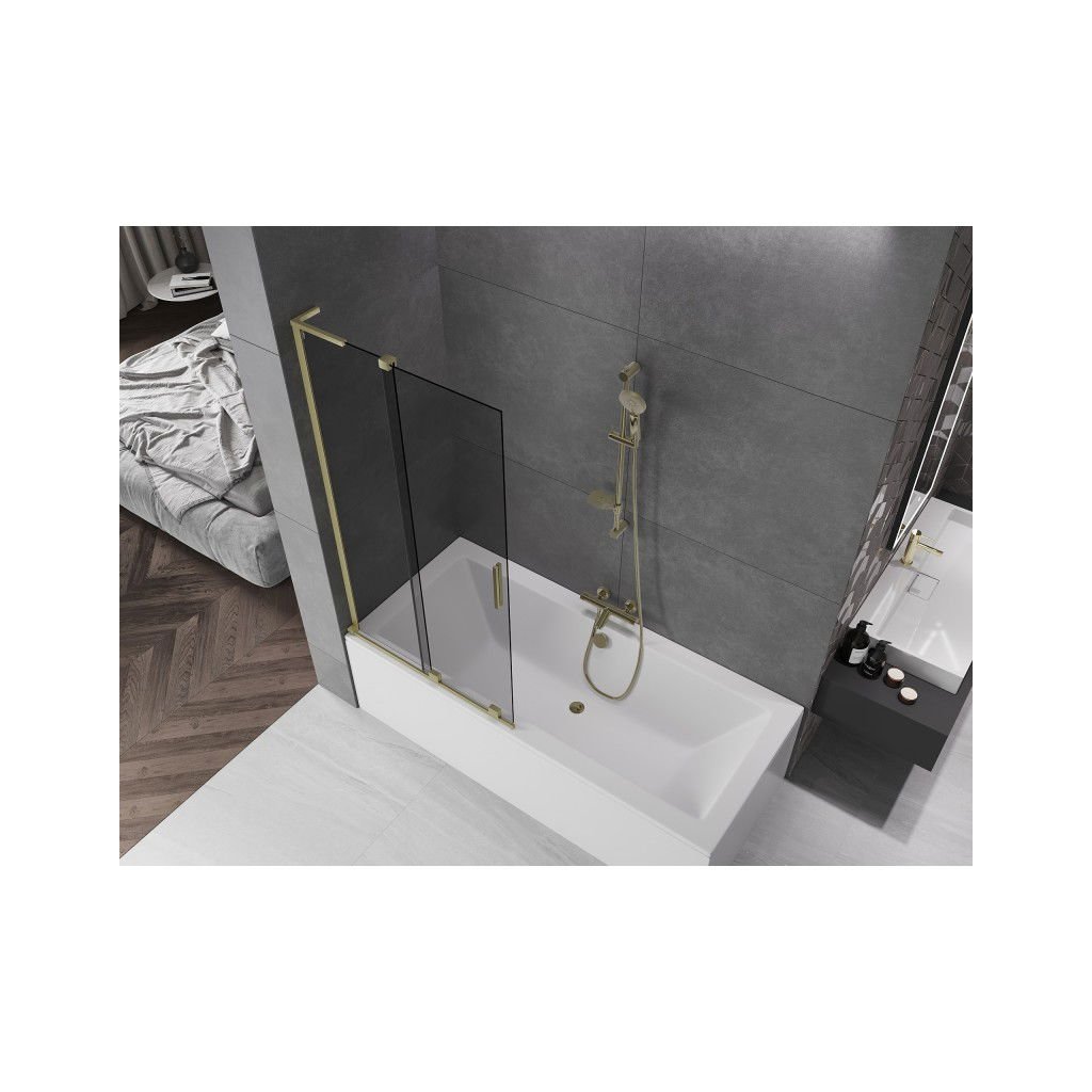 Mexen Velar L, paravan de baie glisant cu 2 aripi 95 x 150 cm, sticlă gri 8 mm, auriu mat, 896-095-003-41-55