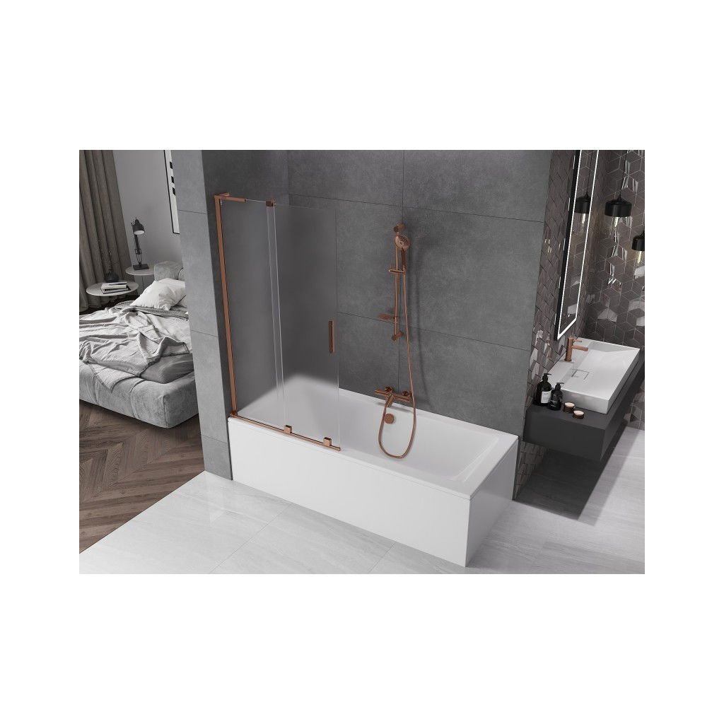 Mexen Velar L, paravan de baie glisant cu 2 aripi 95 x 150 cm, sticlă mată 8 mm, aur roz, 896-095-003-31-60