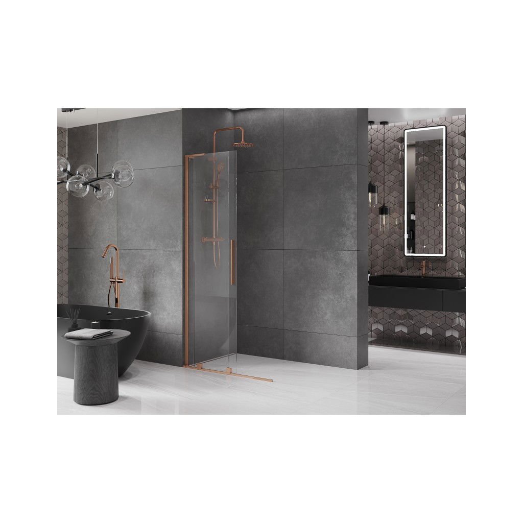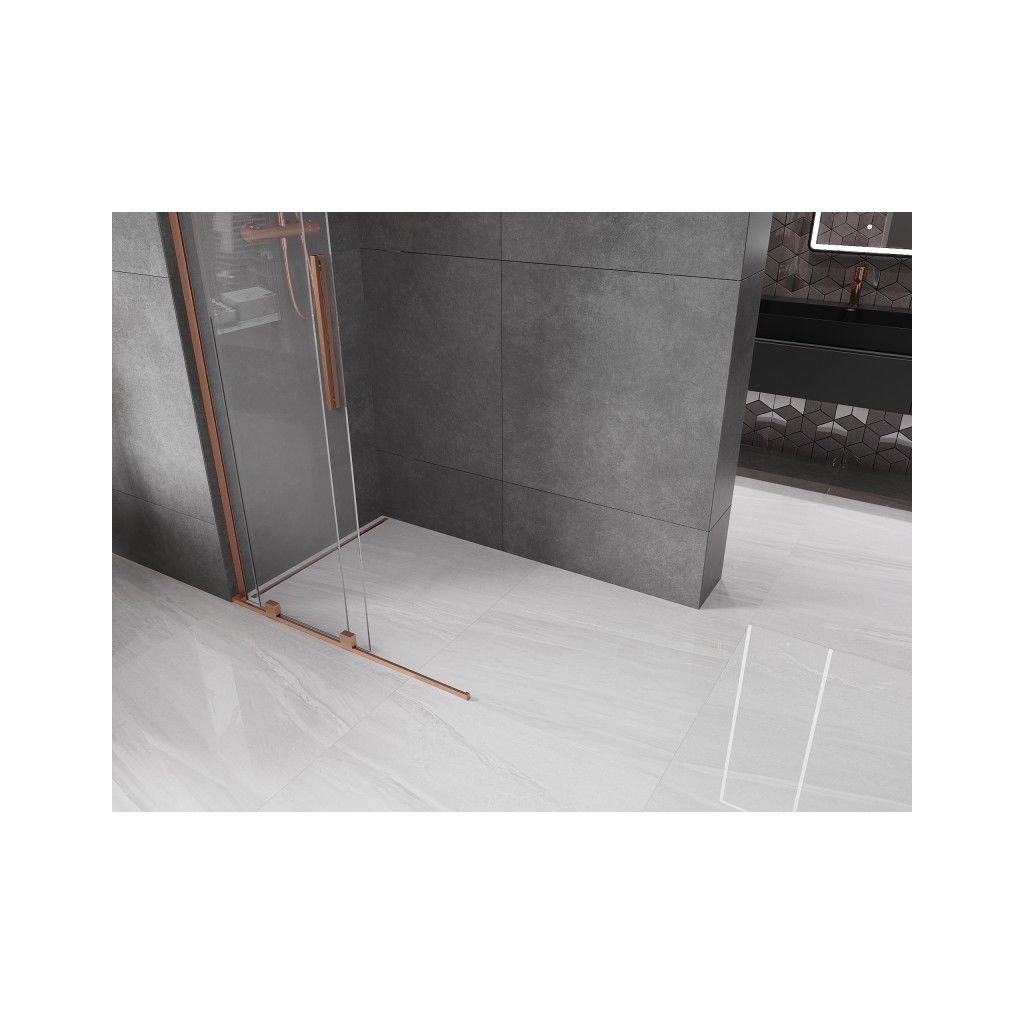 Mexen Velar L, paravan de duș glisant Walk-in 110 x 200 cm, sticlă transparentă de 8 mm, cupru mat, 871-110-003-03-65